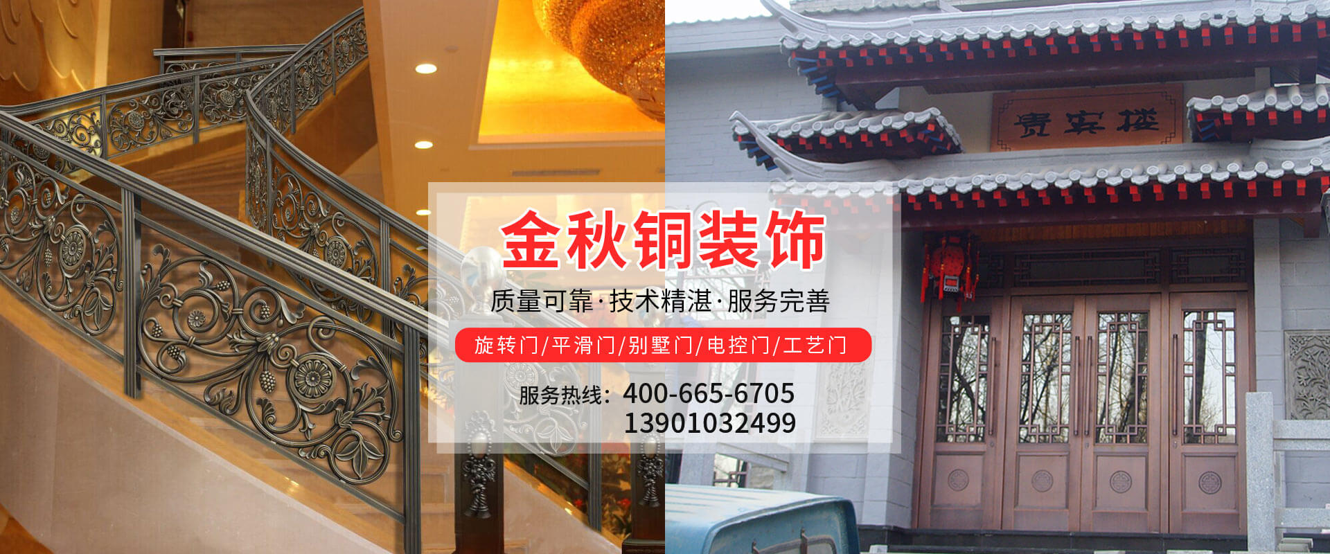 北京金秋銅裝飾材料有限公司是專業(yè)生產(chǎn)銅裝飾材料及設(shè)計、開發(fā)、制造、施工、售后服務為一體的大型綜合企業(yè)。可承接建筑銅裝飾工程及五星級酒店、別墅、博物館、樓樘管所等高檔銅裝飾項目;生產(chǎn)各種規(guī)格的旋轉(zhuǎn)門、平滑門、別墅門、電控門、工藝門、旋轉(zhuǎn)護欄、屋頂銅飾防水瓦、浮雕壁畫......